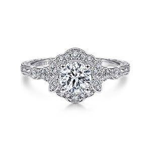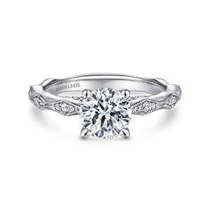 Whether it’s a vintage-inspired round halo engagement ring or a dressier round diamond option, platinum is the ideal metal to show off sparkling diamonds to their best possible advantage. Below are just some of the options from Gabriel & Co featuring this precious metal.
