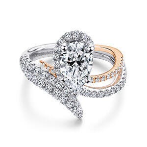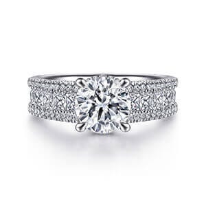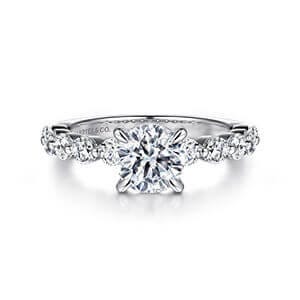 Explore a vast collection of engagement rings at Gabriel & Co. All the rings are available in both 14k and 18k metal variations of yellow, white, rose gold, and platinum. For a few designs, the center stone shapes and carat weight can be customized as per advance order.